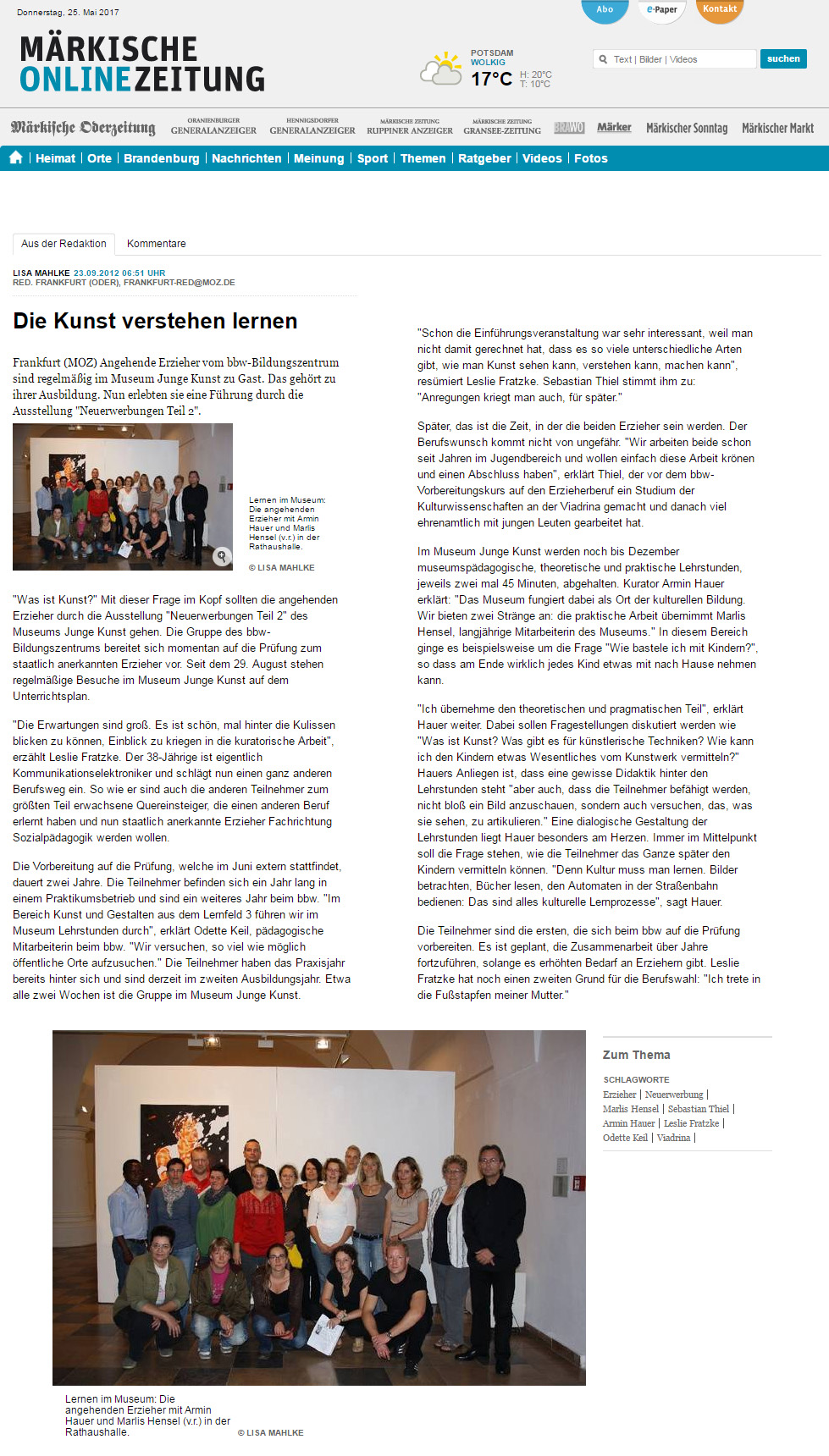 – Besuch im Museum ‘Junge Kunst’ (Herbst 2012) (als jpg-Screenshot hier)