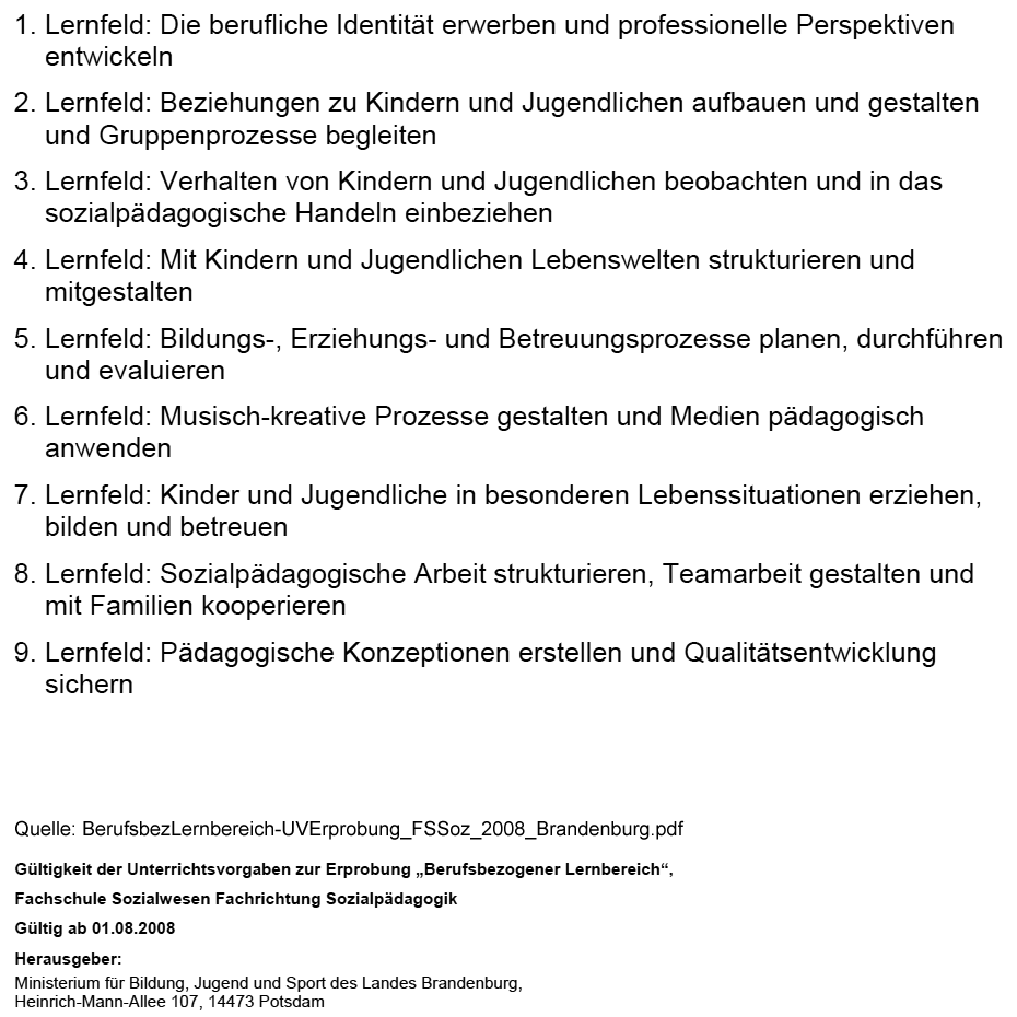 Ziel: Ablegen der Nicht-Schüler-Prüfung * zum staatlich anerkannten * Erzieher