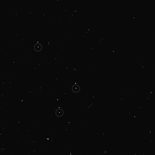 Fig. (middle): Composite of three Cassini images of star 16 Cygni B (inside circles). The similarly bright object directly above 16CygB is its companion 16 Cygni A.